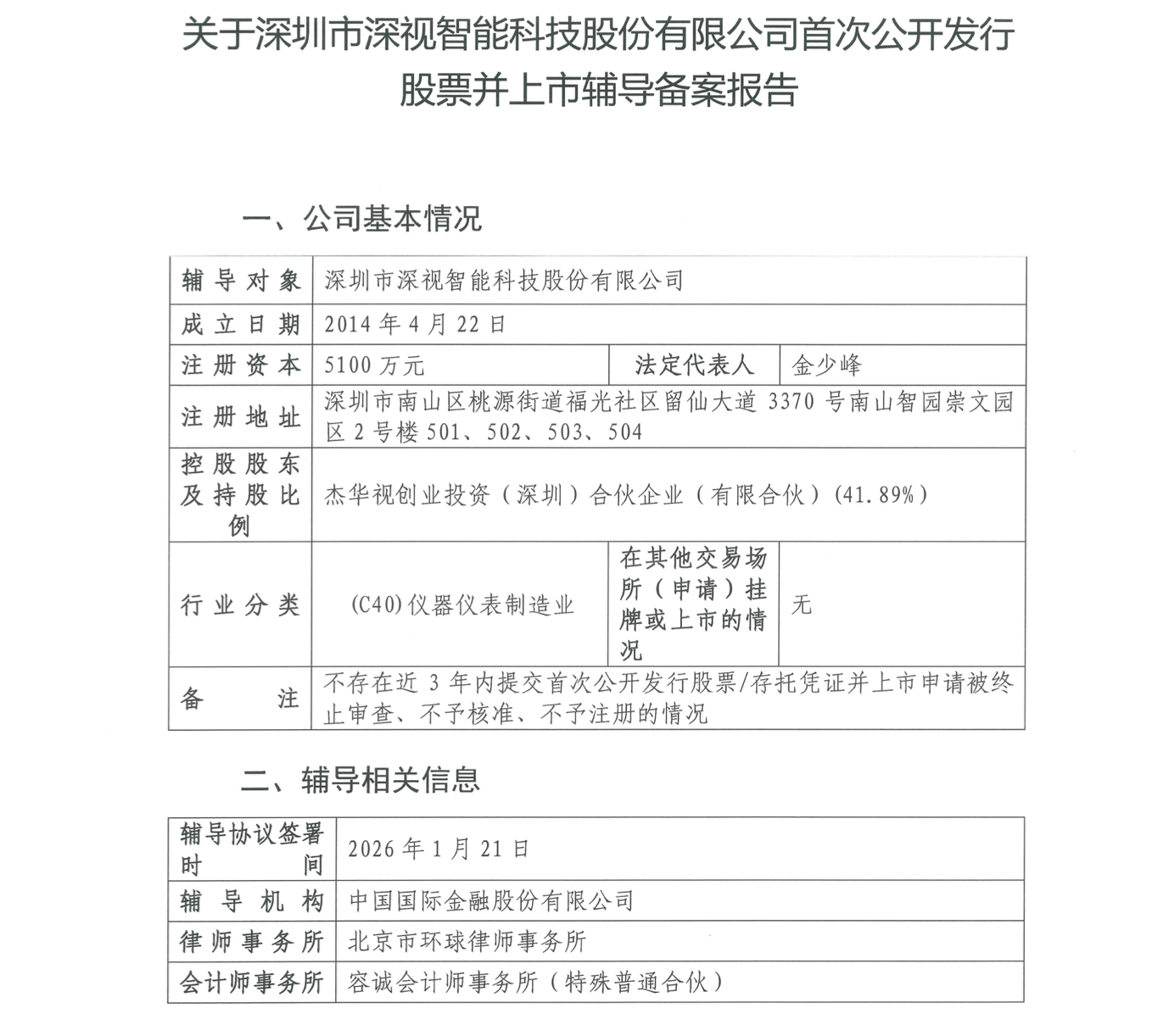1月29日,国产工业传感器与科研成像设备提供商深圳市深视智能科技股份有限公司(下称:深视智能),在深圳证监局进行上市辅导备案,辅导机构为中金公司。