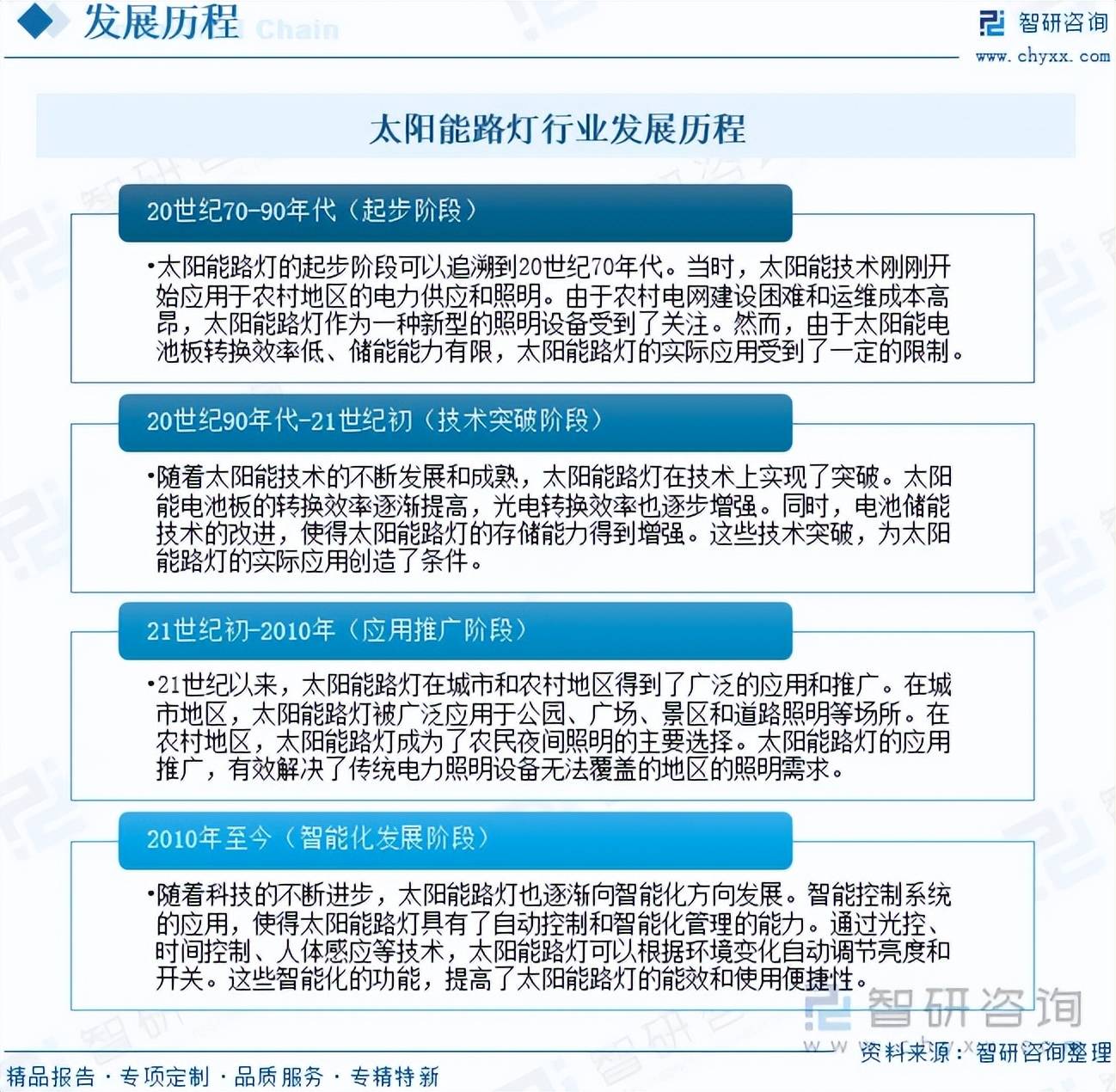 注:本文节选出自智研咨询发布的《研判2026!中国太阳能路灯行业发展历程、产销量、市场规模、重点企业及未来展望:社会绿色转型推动行业发展提速,太阳能路灯市场规模达4.07亿元[图]》行业分析文章,如需获取行业文章全部内容,可进入智研咨询搜索查看。