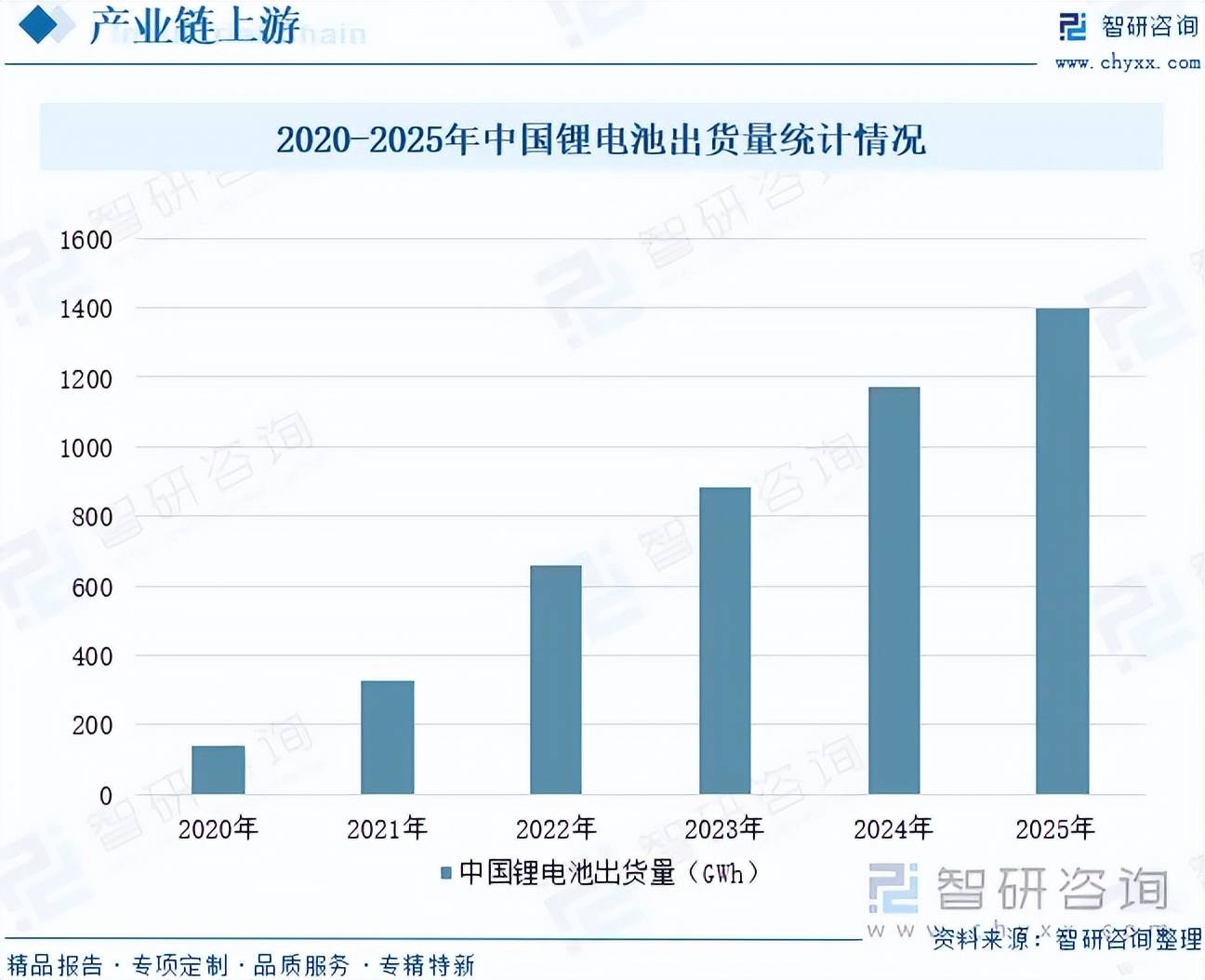 太阳能路灯通常使用锂电池作为储能设备。锂电池是一种高能量密度、长寿命、环保的电池、适合用于太阳能路灯这种需要长时间储存能量的应用。太阳能路灯通过太阳能电池板将太阳能转化为电能,然后将电能储存在锂电池中。白天太阳能电池板会将太阳能转化为电能,并将多余的电能储存在锂电池中。当夜晚来临,太阳能电池板无法继续产生电能时,锂电池会释放储存的电能供太阳能路灯使用。这样,太阳能路灯就能在夜晚正常工作,而无需外部电源供应。受下业需求快速增长的强力驱动,近年来中国锂电池出货量快速上涨。数据显示,中国锂电池出货量从2020年的142GWh增长至2024年的1175GWh,年复合增长率为69.6%。2025年中国锂电池出货量将增长至1400GWh。锂电池出货量的持续高速增长与产能扩张,将为下游太阳能路灯行业提供更为充足、成本优化且性能不断提升的核心储能部件供应保障,有力支撑太阳能路灯的规模化普及与产品迭代升级。