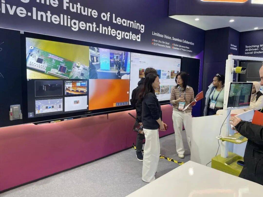 展台重点呈现了成熟量产的TMN系列数字标牌。该系列将TCL卓越的电视级画质与稳定性延伸至商用领域,凭借高色域、防眩光设计与极窄边框,在复杂光环境下仍能提供一致、真实的视觉体验。同时,TCL首次发布专为户外环境打造的TH55HO/TM55HO系列数字标牌。其高达4000nit的亮度与强化防护设计,确保了在直射阳光与温差变化下的清晰可视与持久稳定运行。针对大型空间,TCL展示了服务于冬奥项目的163英寸LED一体机。通过更大尺寸箱体设计减少拼接,实现画面的高度统一与安装效率的提升,可为体育场馆、会议中心等场景提供高效、可靠的巨幕显示解决方案。此外,面向教育与会议场景的定制化IFPD解决方案同样亮相,其中引入Local Dimming等技术,提升了长时间观看的舒适性与内容呈现的层次感。