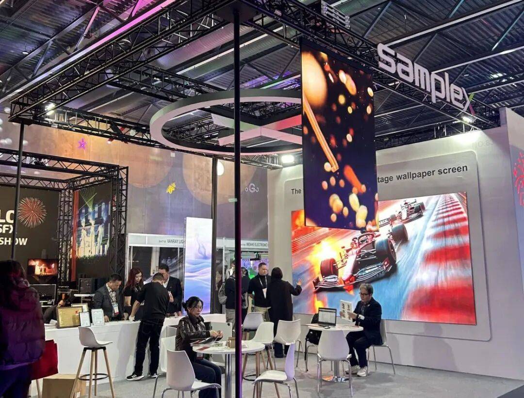 利亚德本次展出的亮点之一是首次于ISE公开亮相的Hi-Micro LED产品,其采用Micro全倒装无衬底芯片,最短边尺寸小于30微米,可实现0.4毫米的超精细像素间距,在亮度、响应速度及能效比上均实现显著提升。同时,利亚德展出了采用量子点Mini-LED背光技术的5K超宽屏LCD系列,具备21:9超宽视野、120Hz高刷新率与超过2000分区局部调光,兼顾高亮度与精准互动体验。另一引人注目的透明LED方案,凭借仅3毫米的超薄柔性设计,在保证高通透度的同时实现鲜艳画质与宽广视角,为创意显示开辟了新空间。